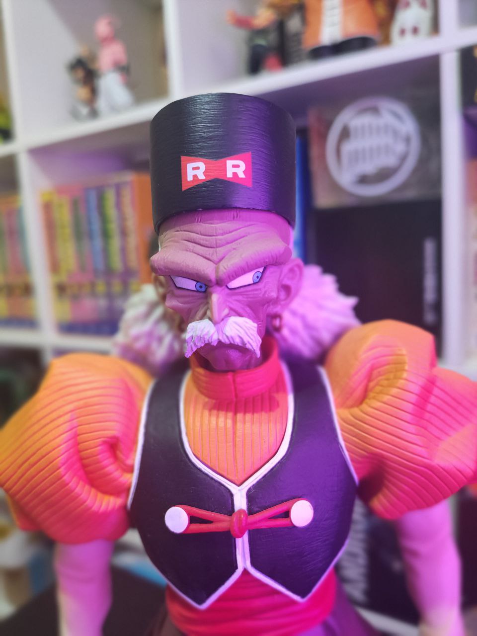 El Dr. Gero en formato MASTERLISE es una figura diseñada para transmitir, ante todo, el peso narrativo del personaje: autoridad, frialdad y amenaza controlada. No se apoya en una pose espectacular; su valor está en la presencia escénica, en la lectura inmediata del “villano científico” y en un modelado que se disfruta tanto a distancia como en inspección cercana, como debe ocurrir en una vitrina de colección.