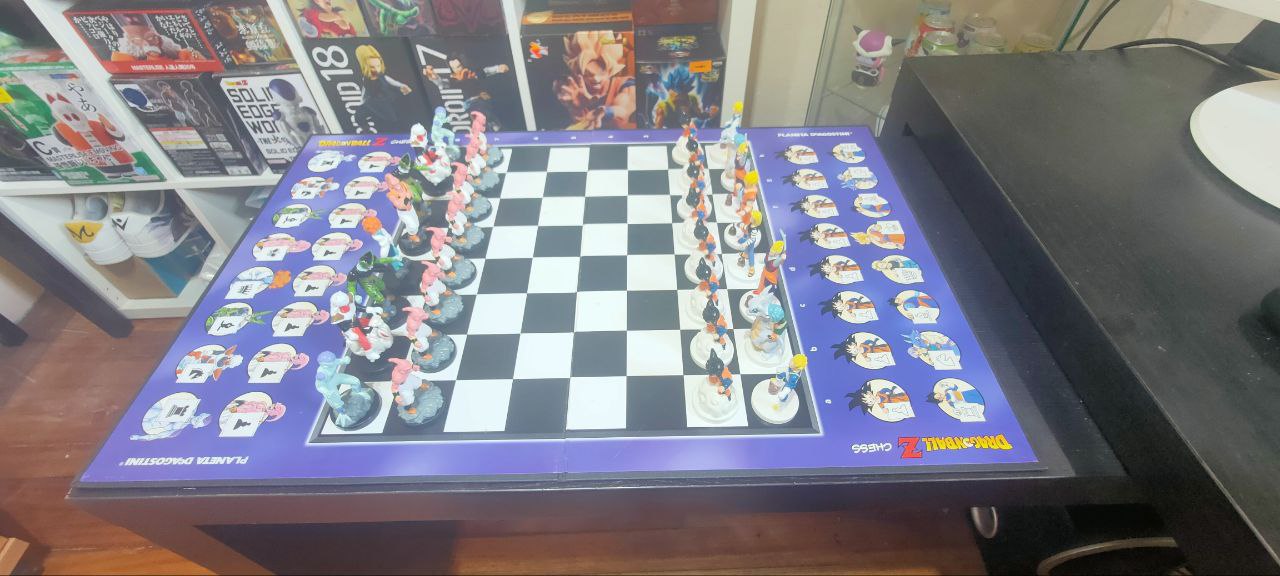 En este ejemplar se aprecia claramente el enfoque temático DBZ: un bando orientado a protagonistas y otro a antagonistas, con repetición de peones y presencia de personajes “principales” en las piezas mayores, pensado tanto para jugar como para exponer.